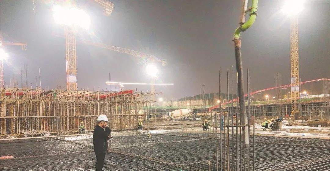 目前,近600名工友正加班加点进行主体结构施工,预计今年底完成整体地下室施工和大部分研发楼封顶任务。
